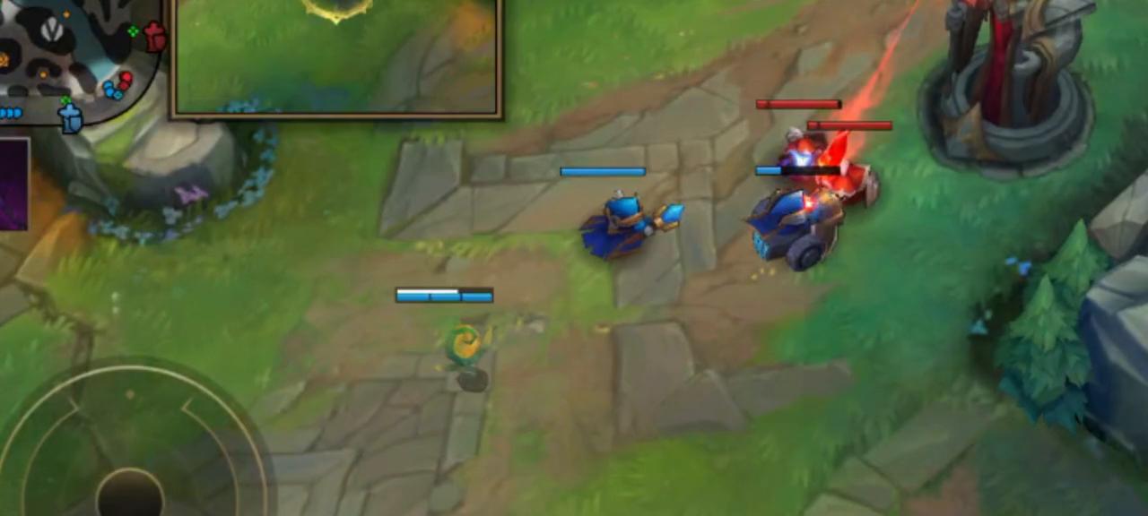 辅助或上单在蓝区插眼,帮助中单抢1级线权,让中单能够安全布置眼位。