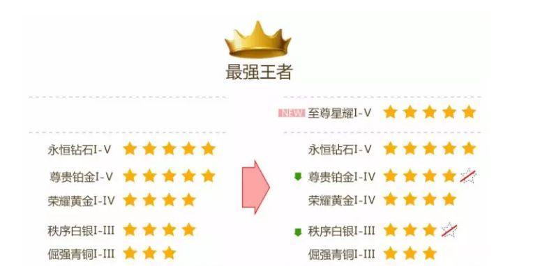 荣耀等级从低到高分别为青铜、白银、黄金、铂金、钻石、星耀、王者,每个等级又分五个段位。