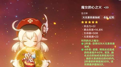 在选择可莉的圣遗物时,不同星级的圣遗物也需要考虑到。高星级的圣遗物属性更为优秀,但是也更加难以获得。在选择可莉的圣遗物时,需要权衡这两方面的因素。