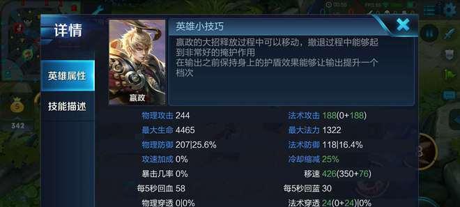 6.技能加点策略:对于嬴政的技能加点,我们应该优先提升1技能“锋骨”,以增加其爆发和控制能力。