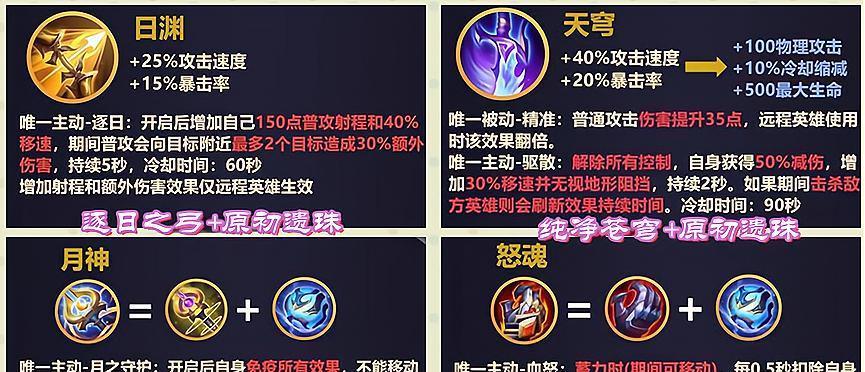 在选择出装时,我们可以优先选择提升核心属性的装备,如攻速装备和暴击装备,以提高天穹后羿的输出能力。而生命值装备和闪避装备则可以根据具体情况进行选择。